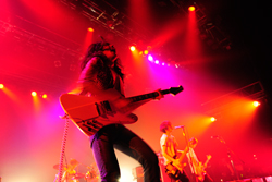 ラストを飾るのはASIAN KUNG-FU GENERATION。今年、デビュー10周年を迎え、9月にはアニバーサリー・スペシャル・ライブを横浜スタジアムで2日間にわたり行ったアジカン。その日以来、3ヵ月ぶりのライブとあって、オーディエンスの期待感が目に見えるように場内に流れる中、the chef cooks meのシモリョーが鍵盤でサポートに入り、5人体制で、「新世紀のラブソング」からライブをスタート。そして、鍵盤のスペーシーな音色が多用されたダンスミュージック的なセッションから「1980」に突入。後藤の挨拶を挟み、「ソラニン」「君という花」「N.G.S」を立て続けにプレイ。「君という花」では、オーディエンスから待ってましたとばかりの「ラッセー! ラッセー!」コール、久々に演奏された「N.G.S」(横浜スタジアムでは披露されず)では、歓喜の声が鳴り止まない。